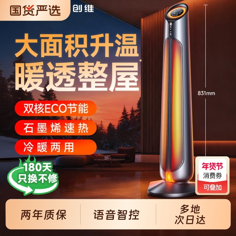 创维暖风机家用立式取暖器2025新款石墨烯电暖器冬天暖气语音省电