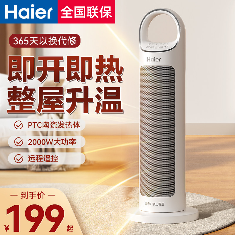 骆驼新款家用塔式取暖器 语音遥控卧室小太阳 冷热两用立式取暖器