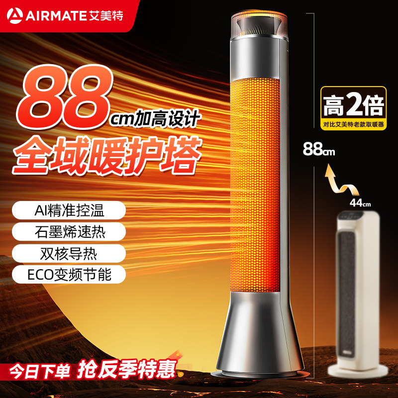 艾美特石墨烯暖风机立式取暖器家用客厅卧室大空间速热神器电暖气