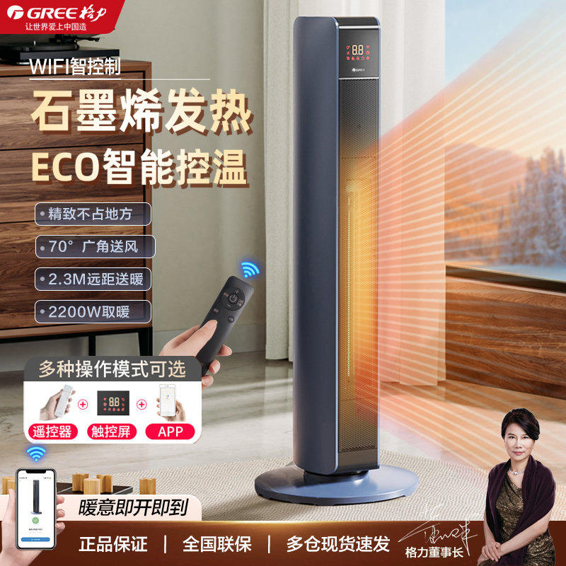 格力暖风机家用智能恒温石墨烯省电暖气机智能wifi遥控立式取暖器