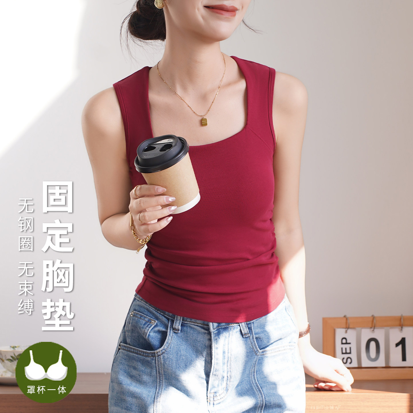 Q21小确幸工字吊带背心女内搭带胸垫一体式美背夏外穿打底上衣