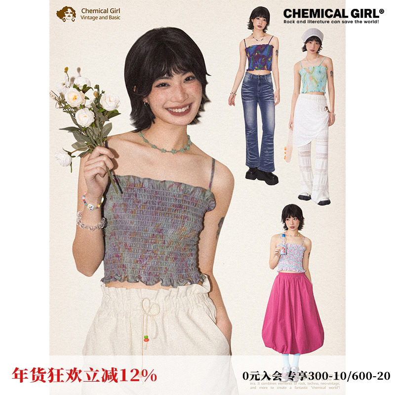 化学少女「昭和频率」夏季四色紧身辣妹外穿吊带背心小众短款上衣