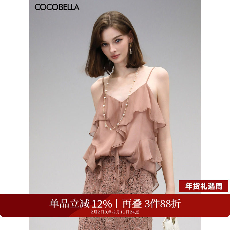 COCOBELLA不规则荷叶边可外穿吊带飘逸仙女风雪纺背心VT3004-2