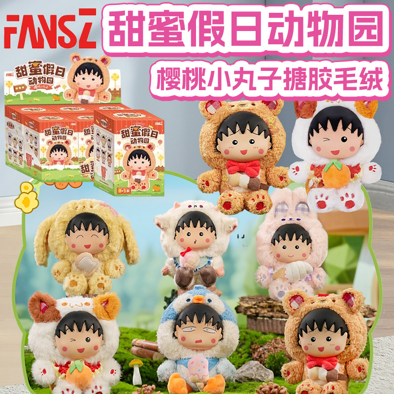 新FANSZ樱桃小丸子周边甜蜜假日动物园毛绒公仔桌面摆件玩偶盲盒