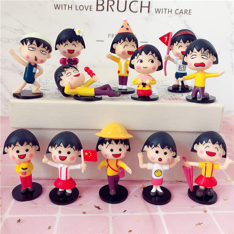 一套10款樱桃小丸子手办动漫周边公仔玩具玩偶模型摆件生日礼物