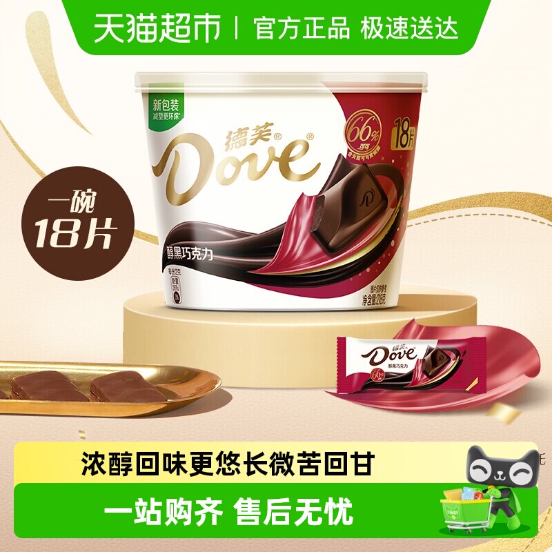 Dove/德芙香浓黑巧克力112g*1碗(含8块)儿童小吃零食婚庆喜糖果
