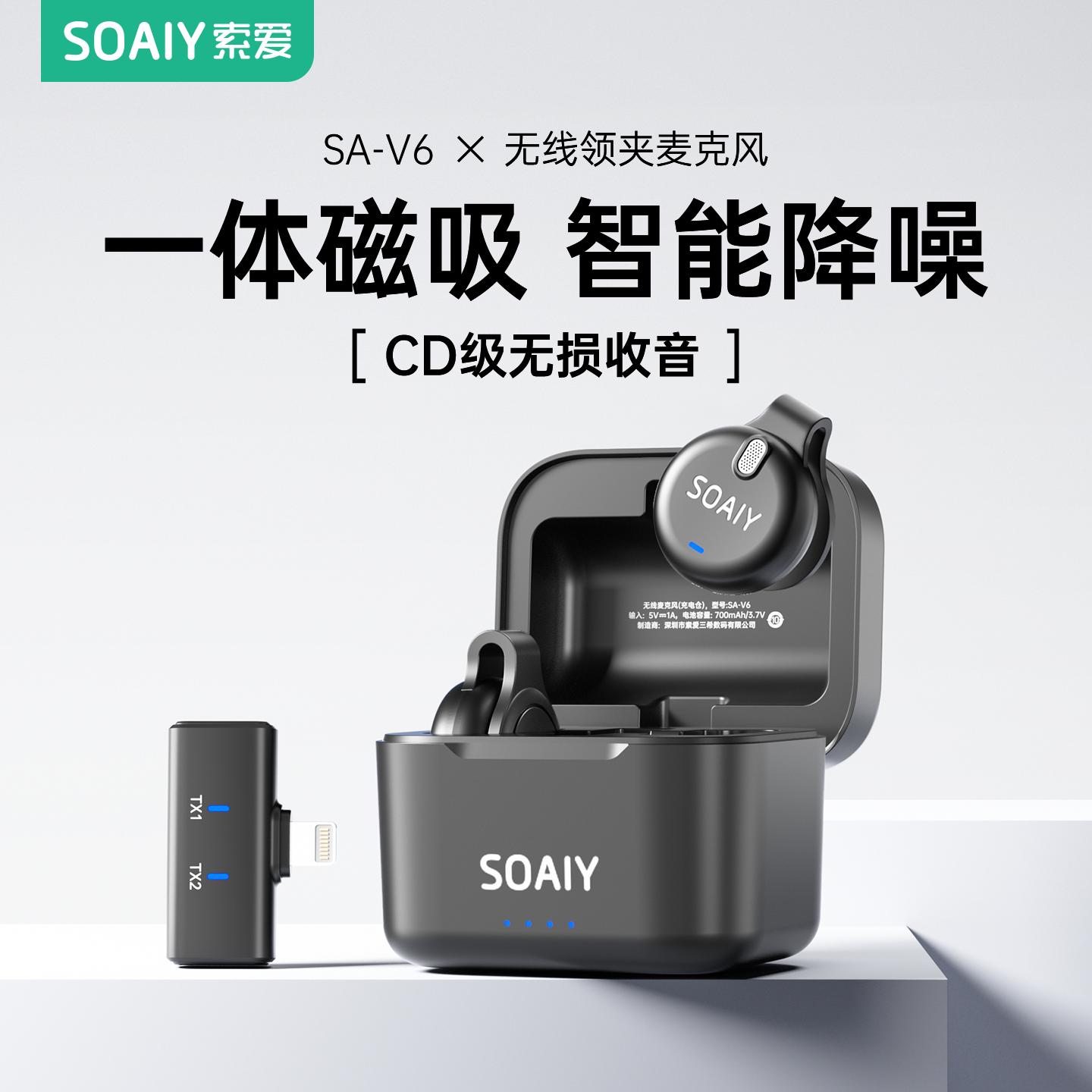 索爱V6直播无线麦克风夹领式收音麦手机电脑主播录音降噪专用设备