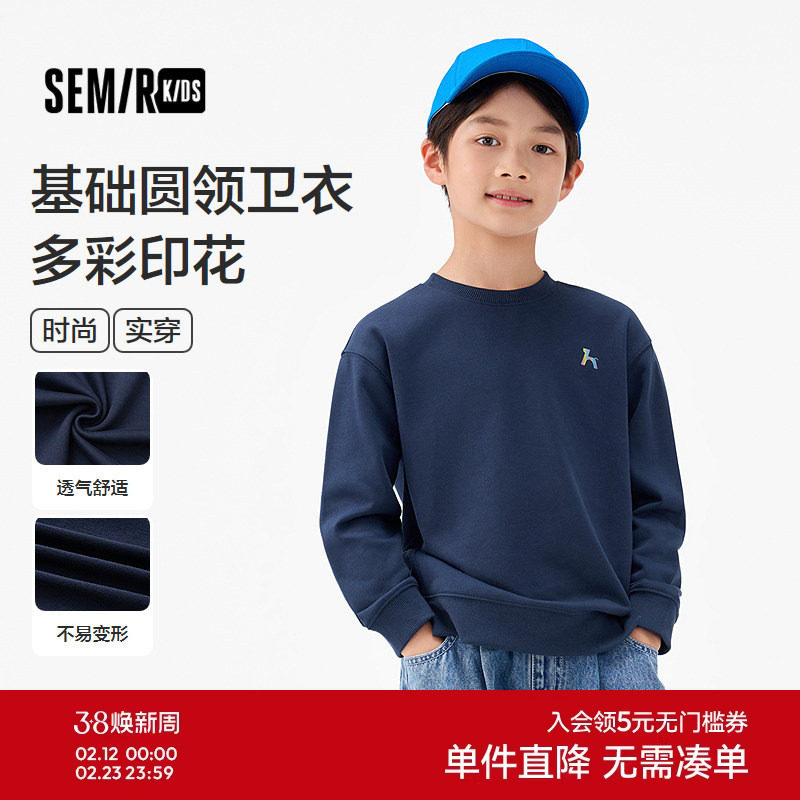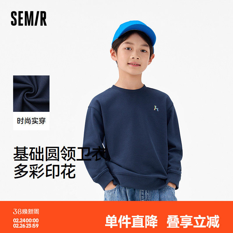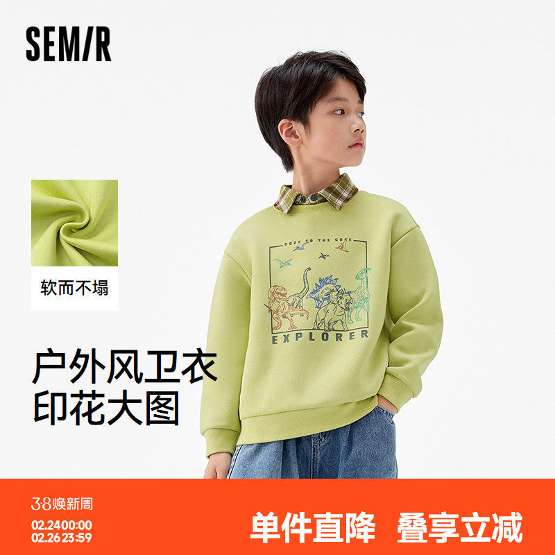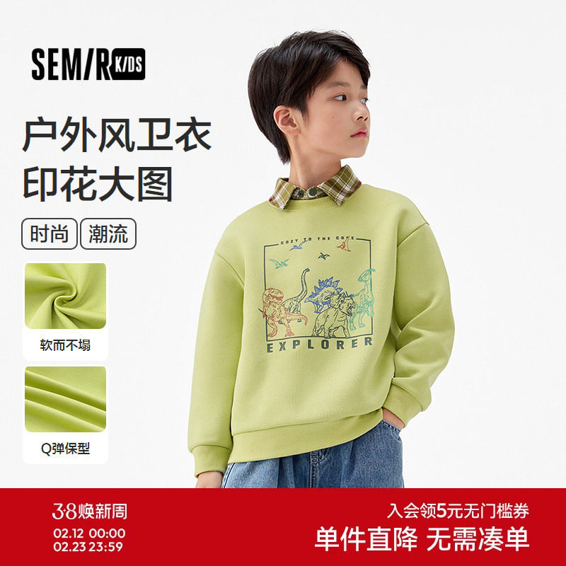 森马儿童25年秋季新款男中童卫衣户外风时尚印花圆领上衣宽松落肩