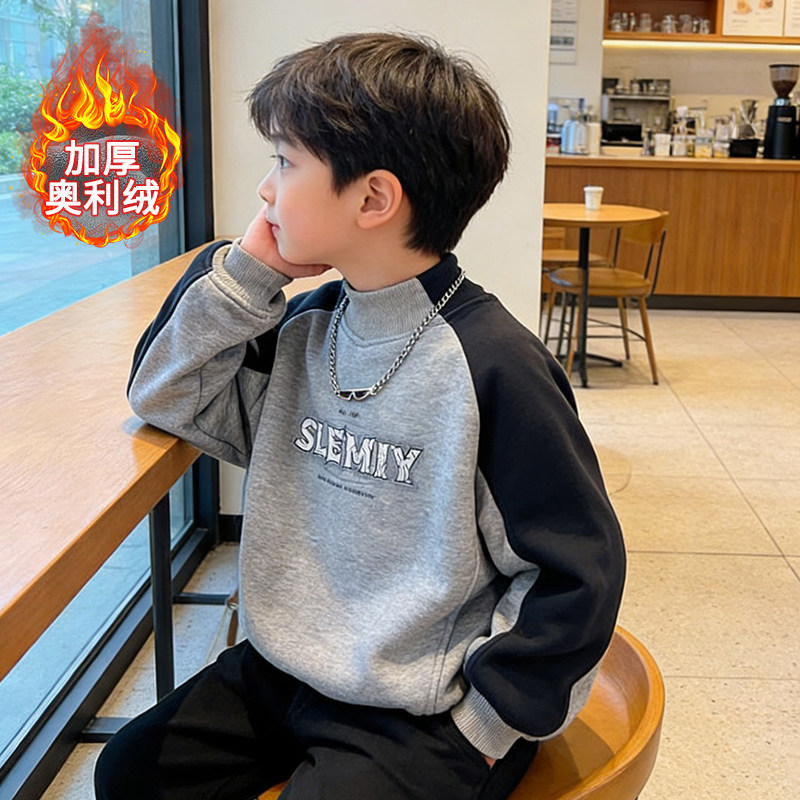 男童加绒卫衣秋冬款2026新款儿童中领小立领男孩上衣中童小童帅气