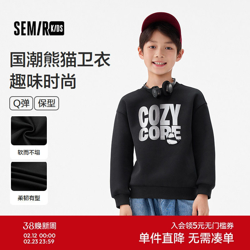 森马儿童25秋男中童卫衣国潮熊猫印花圆领套头衫时尚休闲针织上衣