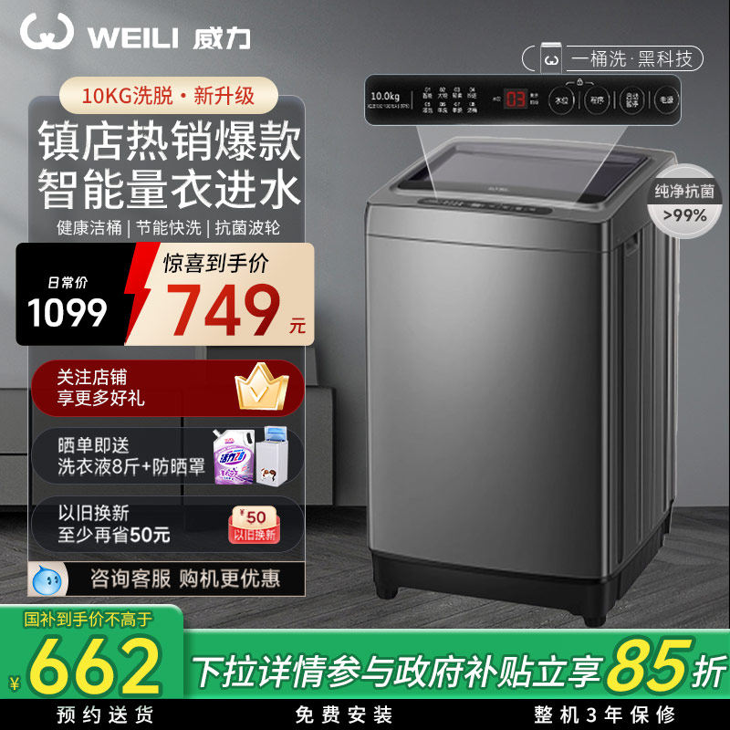 WEILI威力10KG波轮大容量抑菌智能进水一键洗衣全自动洗衣机10099