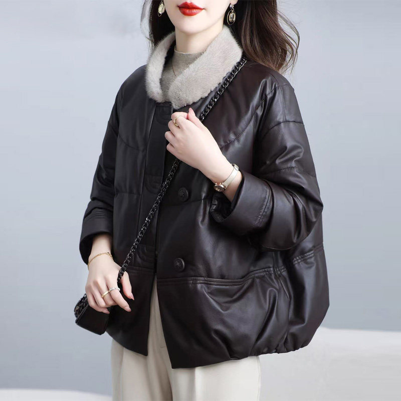 海宁真皮皮衣女短款中式小个子时尚水貂毛领外套显瘦绵羊皮鹅绒服