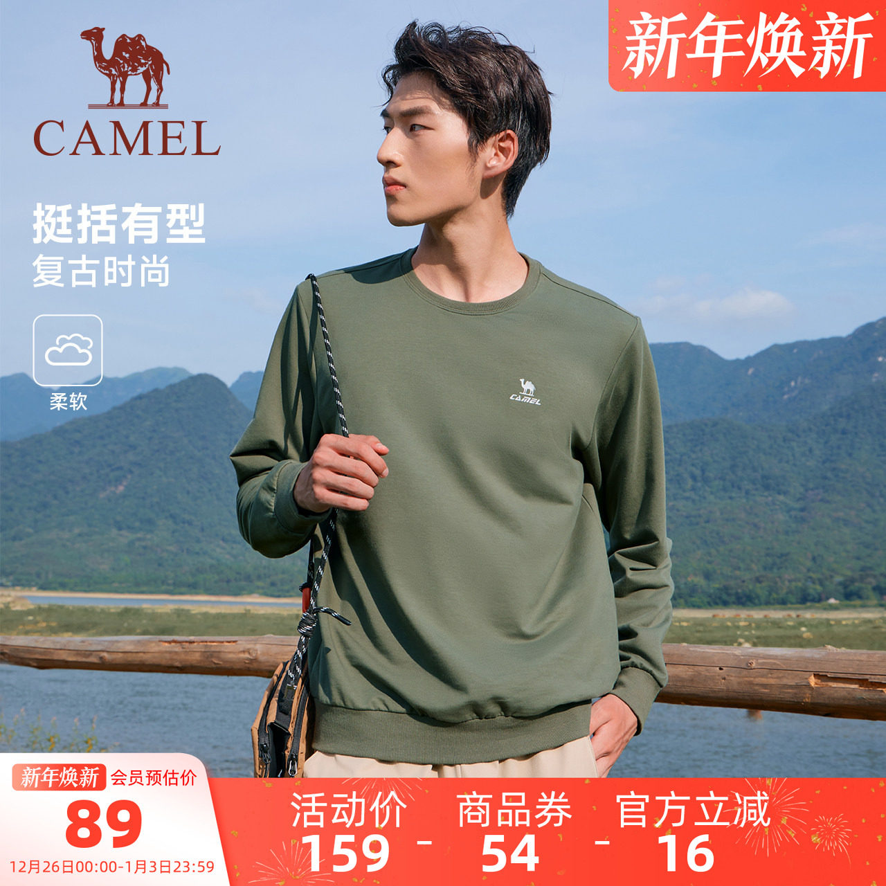 骆驼圆领长袖t恤套头卫衣男士春秋季时尚宽松薄款休闲运动上衣女