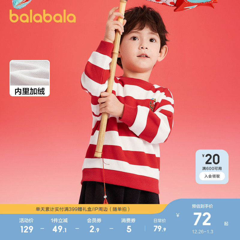 巴拉巴拉童装儿童卫衣女童男童2025春秋装宽松加绒上衣小童内搭潮