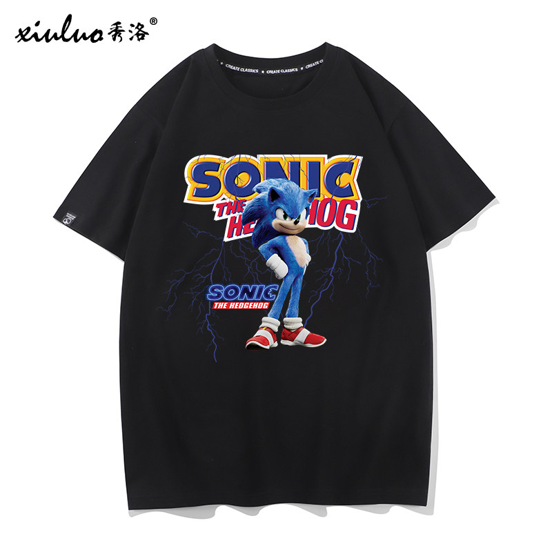 秀洛刺猬索尼克t恤短袖宽松纯棉圆领体恤打底衫卡通动漫衣服半袖