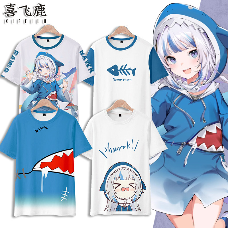 动漫衣服鲨鱼娘Gawr Gura短袖T恤噶呜古拉夏季体恤二次元Vtuber宅