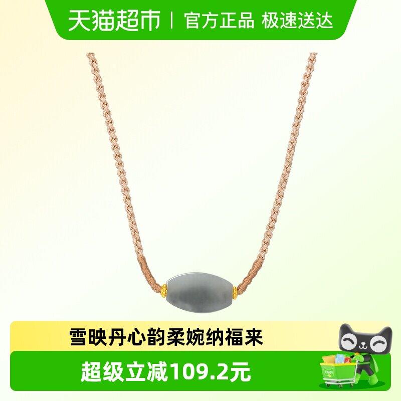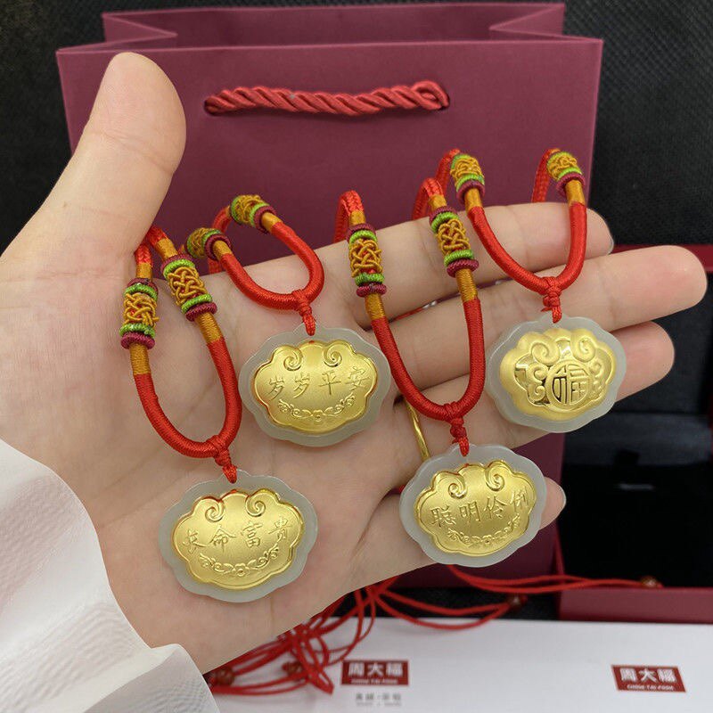 六桂福珠宝黄金和田玉吊坠女款挂坠带编绳足金项链生日礼物送女友