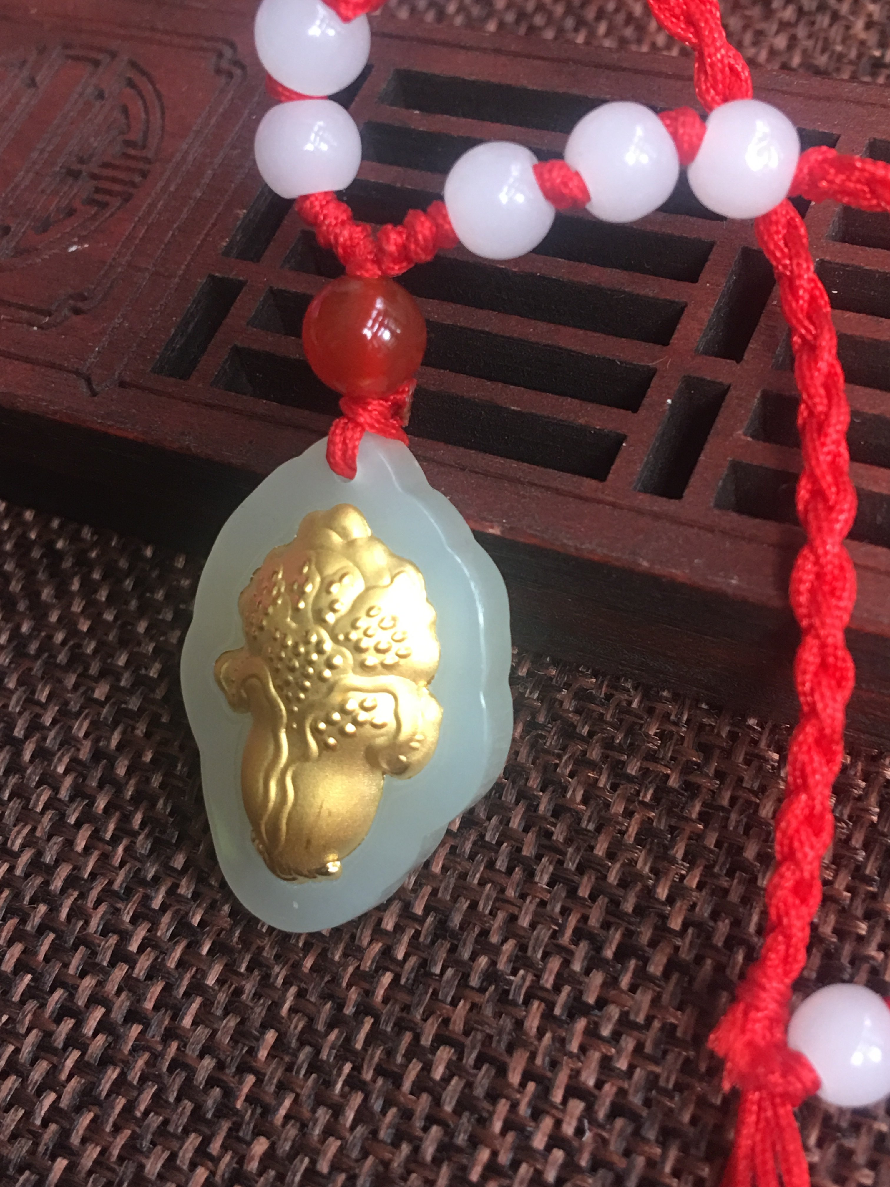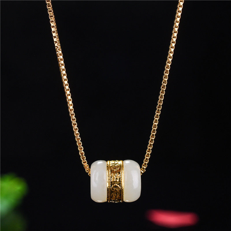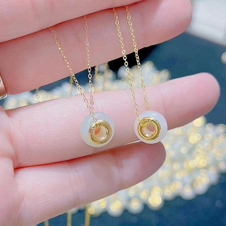 福利款 天然和田玉足金镶嵌款转运珠吊坠 女款玉石锁骨链挂坠饰品