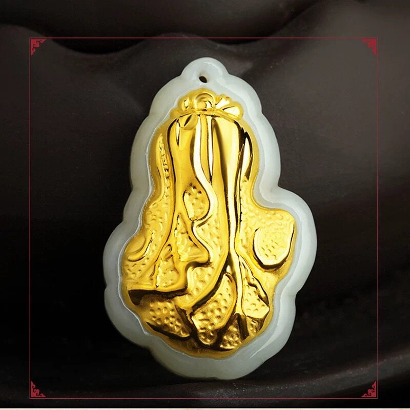 金镶玉葫芦吊坠和田羊脂玉碧玉黄金吊坠足金999男女款项链首饰