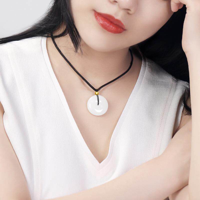 足金路路通转运珠金镶玉吊坠和田白玉串珠圆环项链单颗女款送女友
