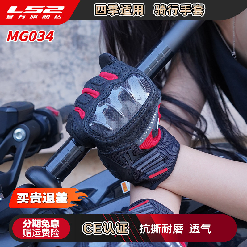 LS2碳纤维摩托车手套男女四季赛车越野机车骑行装备防摔透气夏034