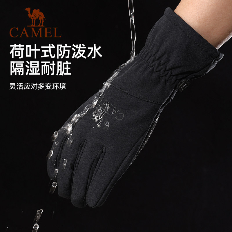 骆驼电动摩托车手套男女冬季加厚保暖加绒滑雪可触屏骑行防风防寒