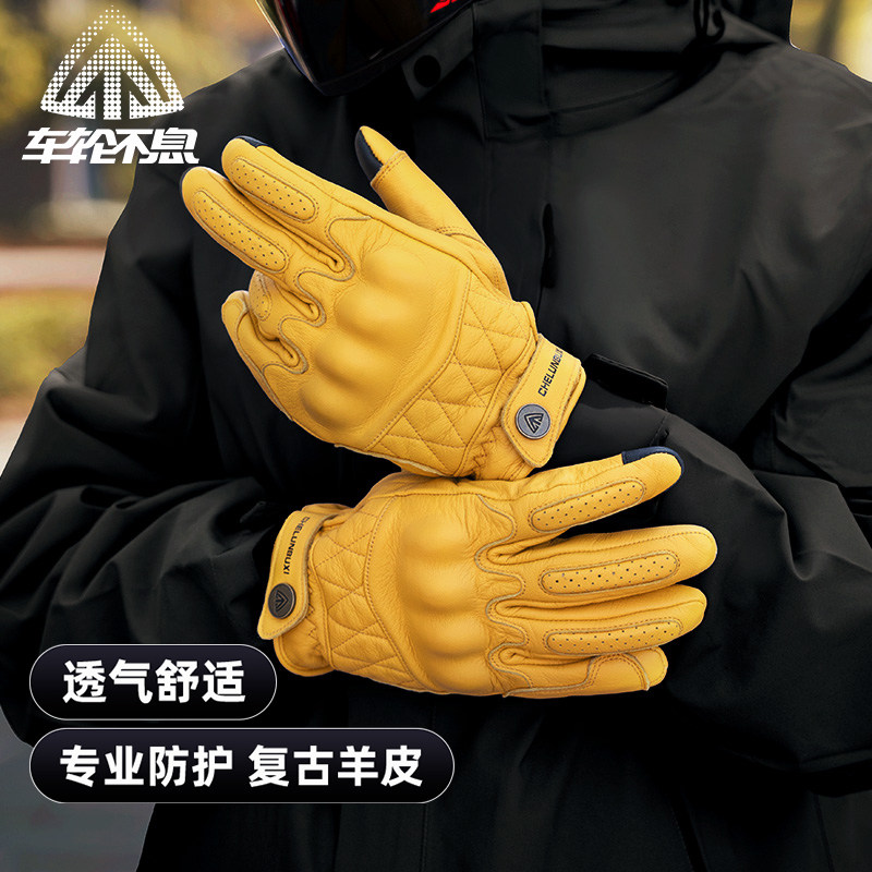 车轮不息复古摩托车手套男夏季透气骑行手套机车巡航防护四季通用