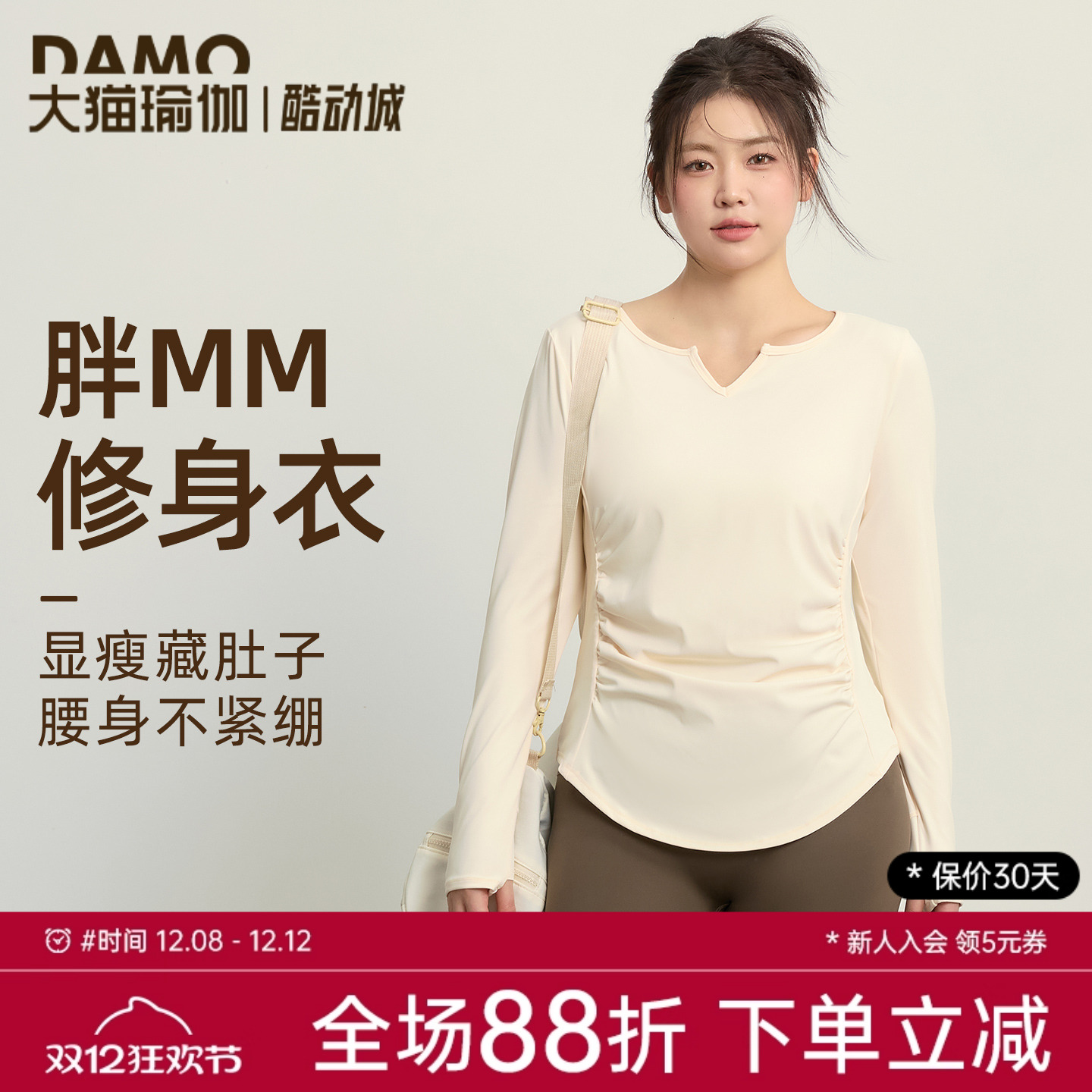 大码瑜伽服女长袖运动上衣2025新款V领修身速干衣胖mm健身服套装