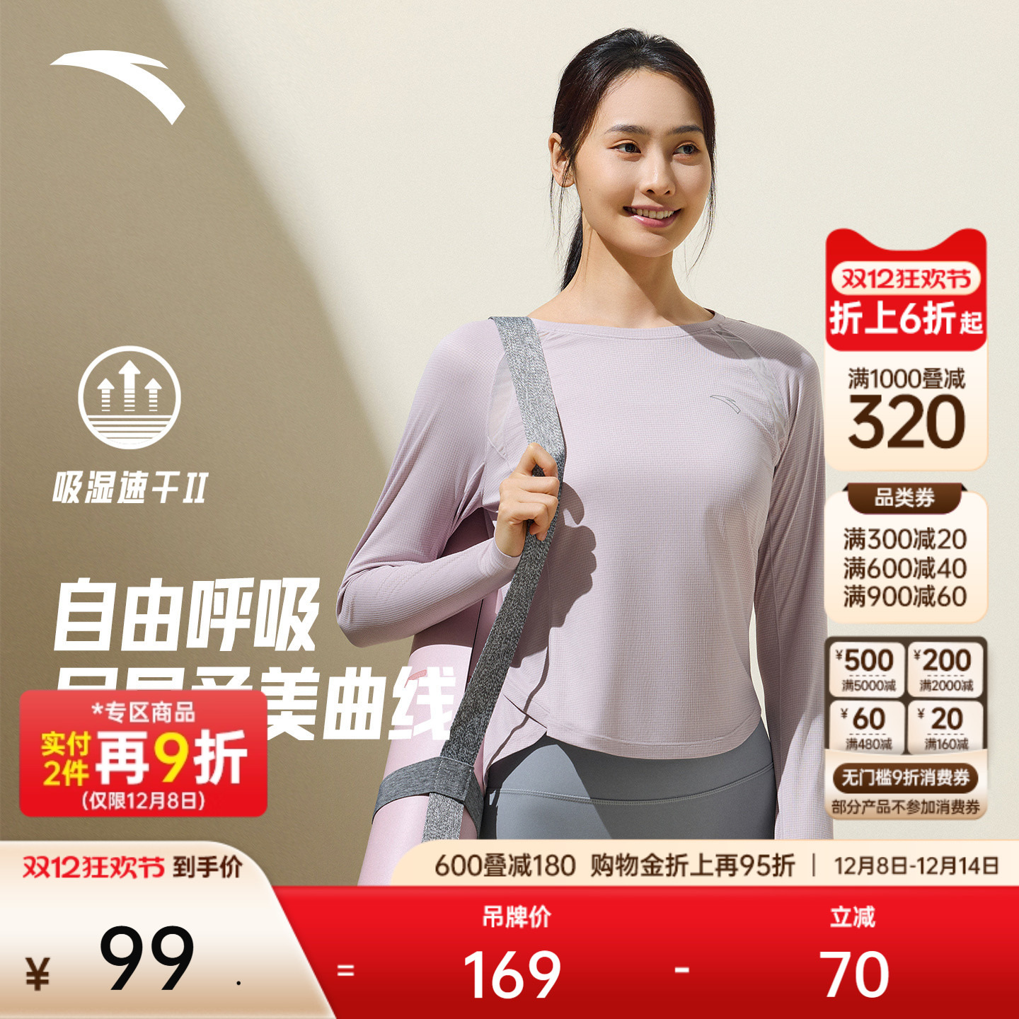 安踏速干大师丨长袖t恤女士冬季瑜伽服健身训练修身跑步运动上衣