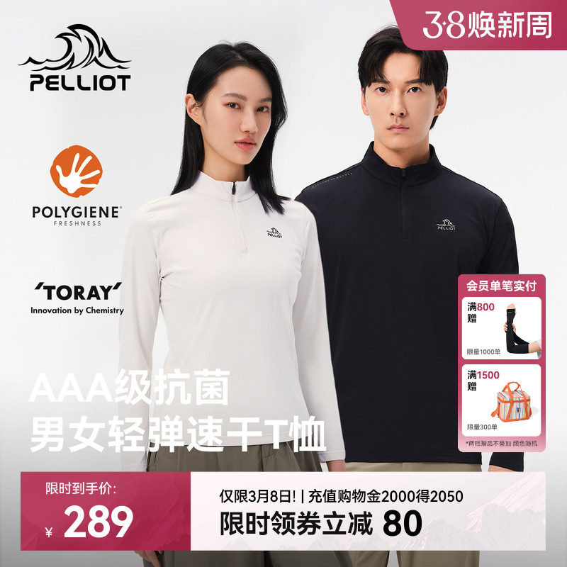 伯希和户外速干T恤春季男立领跑步运动长袖打底衫徒步登山上衣女