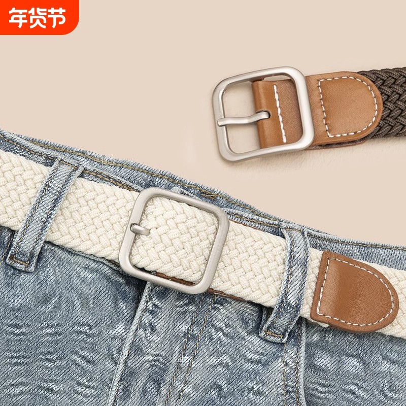 2025新款针扣帆布编织腰带男女百搭休闲皮带学生牛仔裤带松紧扣头
