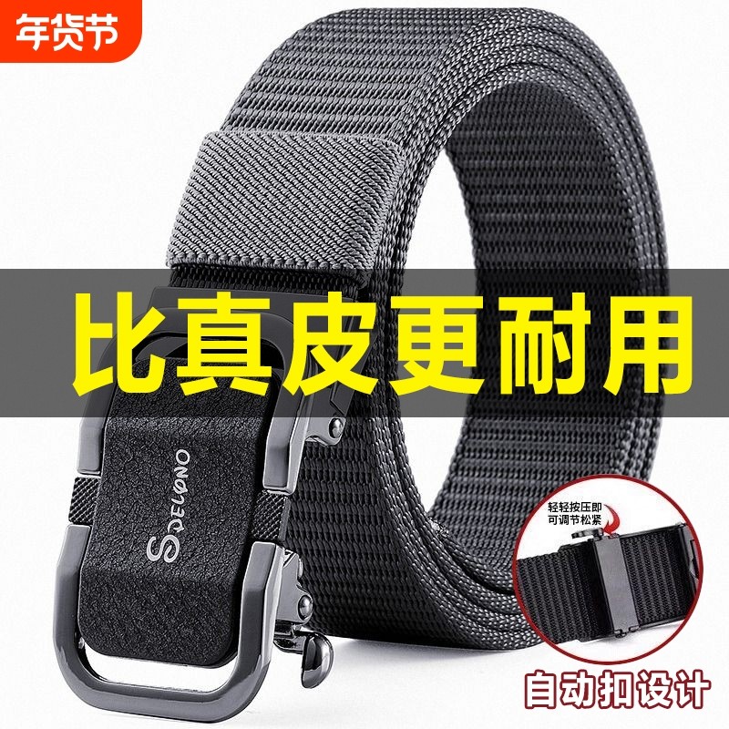帆布腰带男士自动扣休闲百搭尼龙战术裤带子军训户外皮带新款松紧