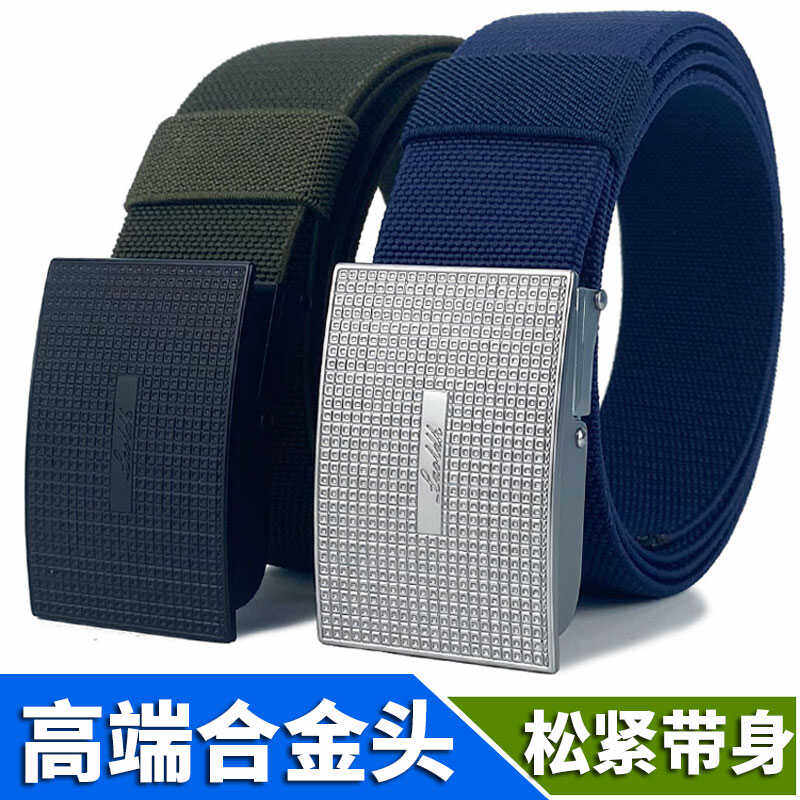 新款休闲合金插扣战术腰带松紧男士弹力帆布腰带百搭工装牛仔裤带
