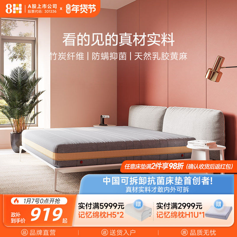 8H小金泰国进口天然乳胶床垫1.8m天然黄麻偏硬弹簧护脊席梦思床垫