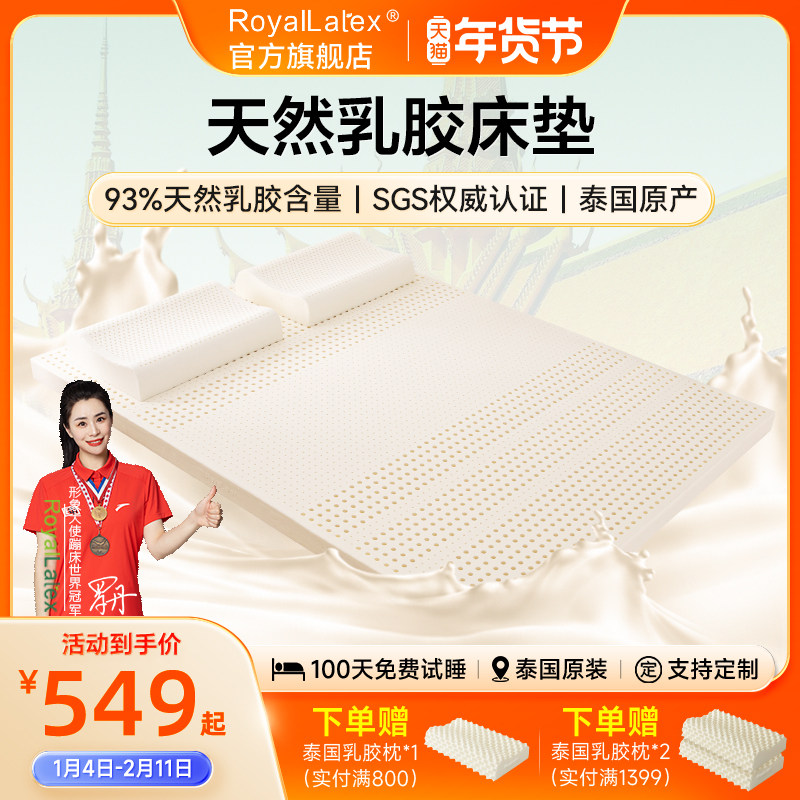 Royallatex及图官方 泰国进口天然乳胶床垫1.8m进口家用薄垫子