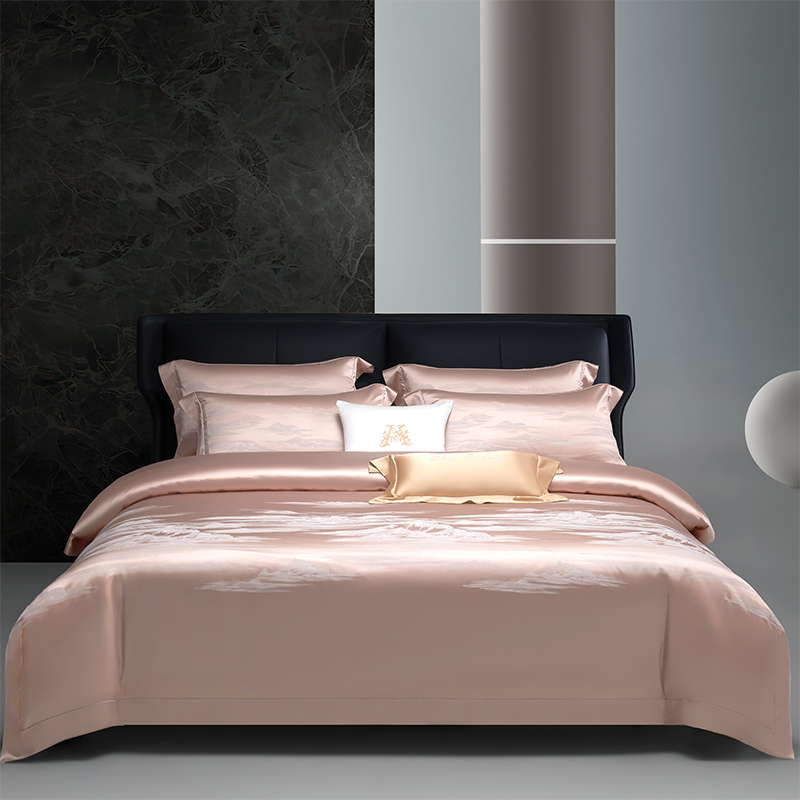 高档奢华140支真丝棉四件套轻奢简约提花被套全纯棉婚庆床上用品