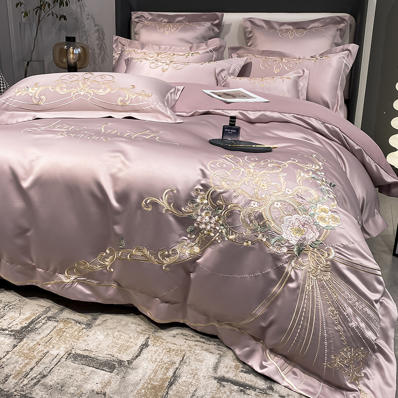 高档奢华双面冰丝四件套轻奢简约刺绣被套真丝滑裸睡欧式床上用品