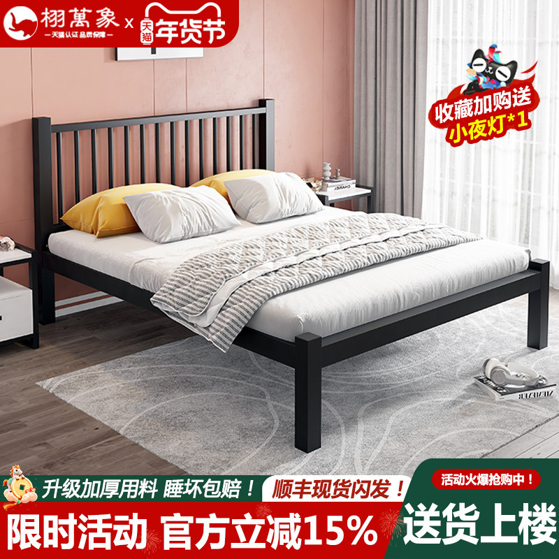 床1.8米铁艺床铁床加厚加固双人床1.5单人北欧网红现代简约铁架床