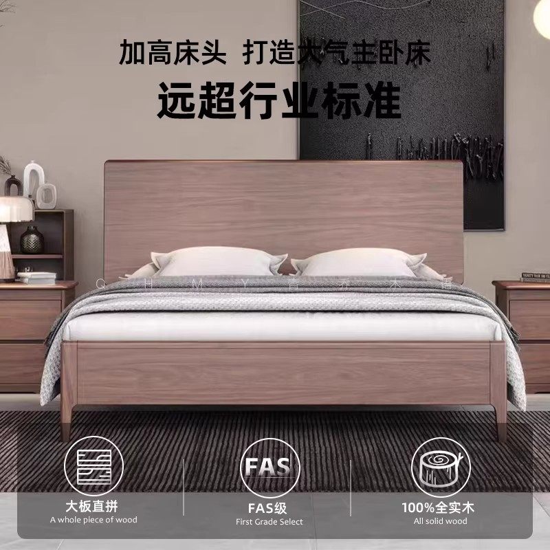 黑胡桃木实木床1.8米大床北欧中古风主卧床1.5米高端大气双人床