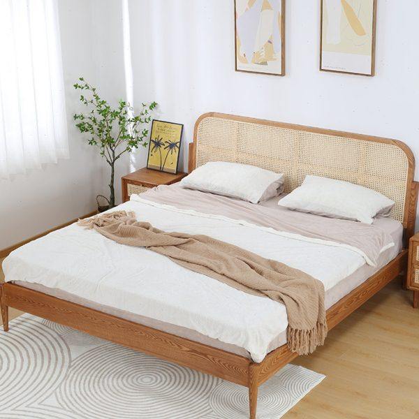 藤编床白蜡木实木床北欧双人床1.8米原木色1.5米民宿简约侘寂风床
