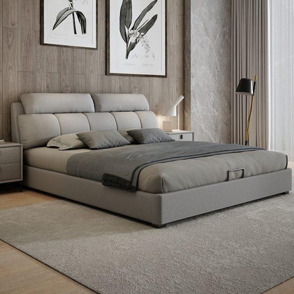北欧纳帕真皮床现代简约主卧大床1.8米软包高箱储物轻奢床双人床