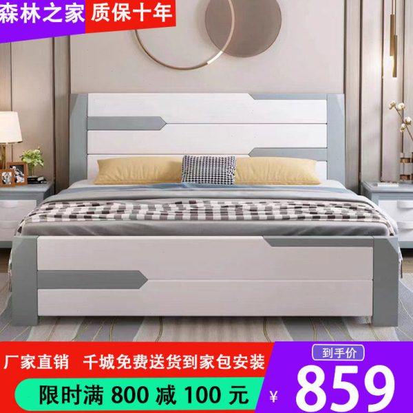 实木床现代简约北欧双人床1.8米主卧室1.5经济型单人高箱储物婚床