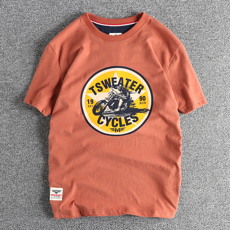 趣味水果 美式复古橙子印花短袖T恤男 夏季宽松百搭氛围感上衣潮