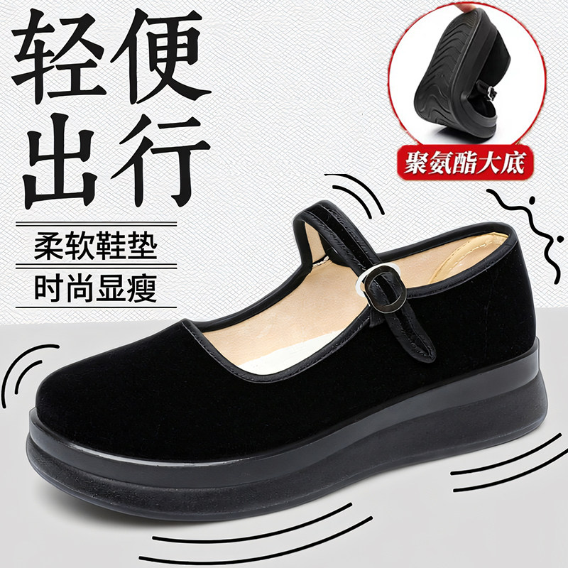 老北京布鞋女新款防滑软底工作鞋黑色厚底妈妈鞋舒适不累脚上班鞋