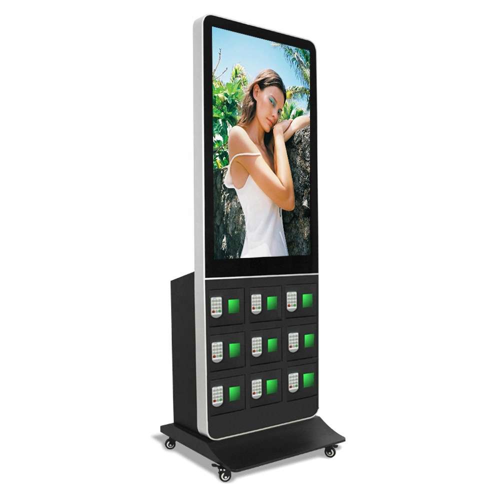42寸立式广告机+9门密码锁充电柜 超市饭店俱乐部手机存放充电柜