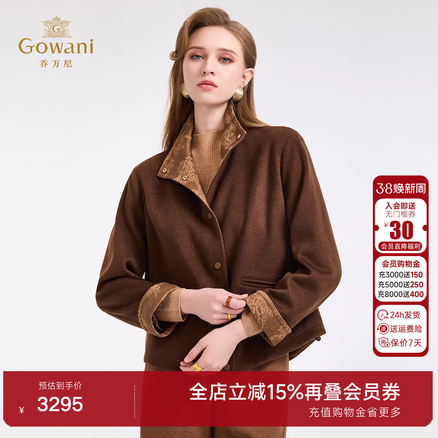 乔万尼翻领毛呢外套女短款收腰修身气质老钱风呢子大衣ED4B778