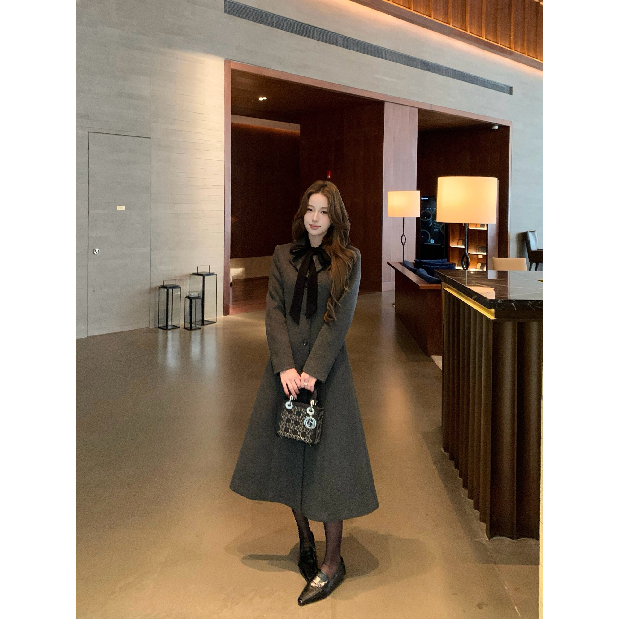 - 长款过膝大衣