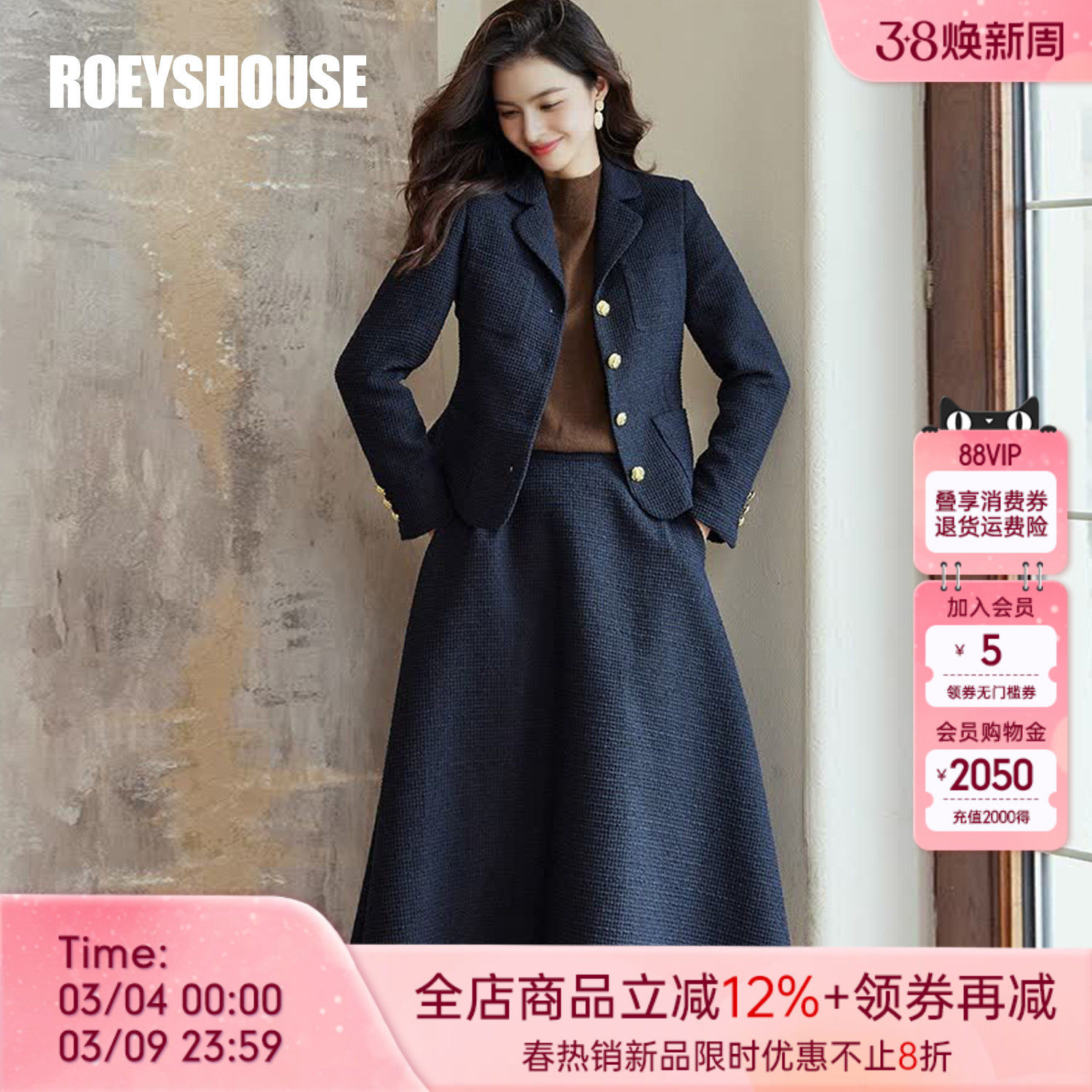 罗衣小香风毛呢西装套装裙女冬季职场修身收腰短外套两件套07792
