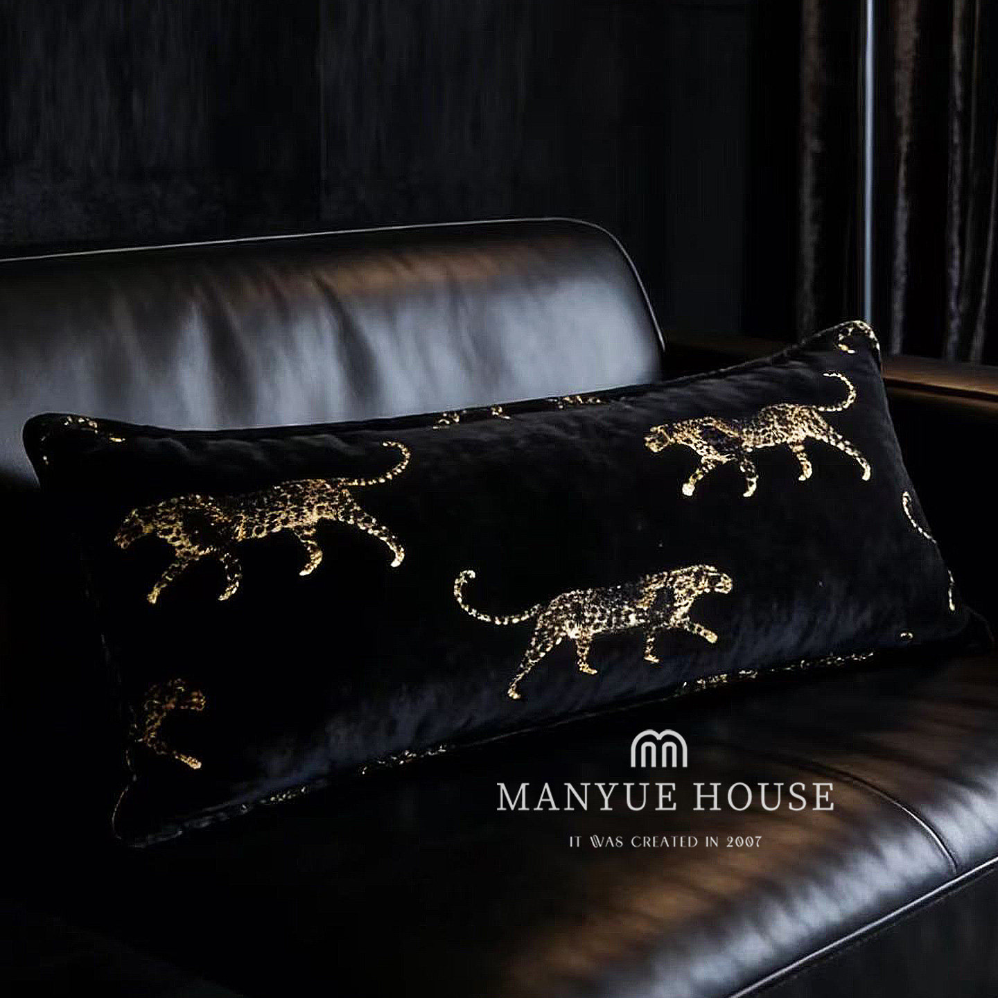 M.life 高级感轻奢豹纹黑长条抱枕客厅沙发腰靠垫样板间装饰含芯