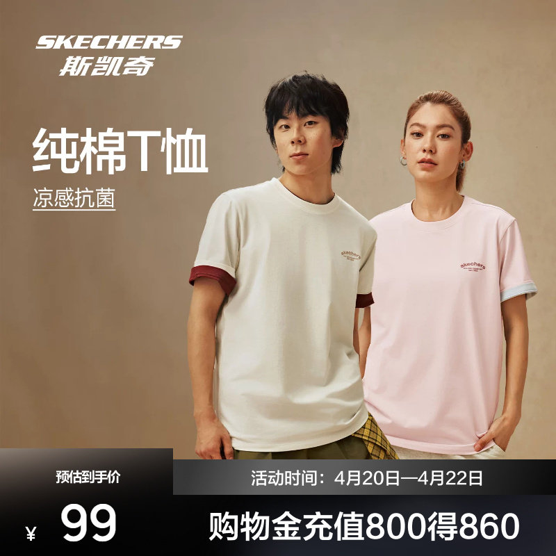 斯凯奇纯棉t恤短袖2026夏季新品男女款LOGO印花圆领打底宽松上衣